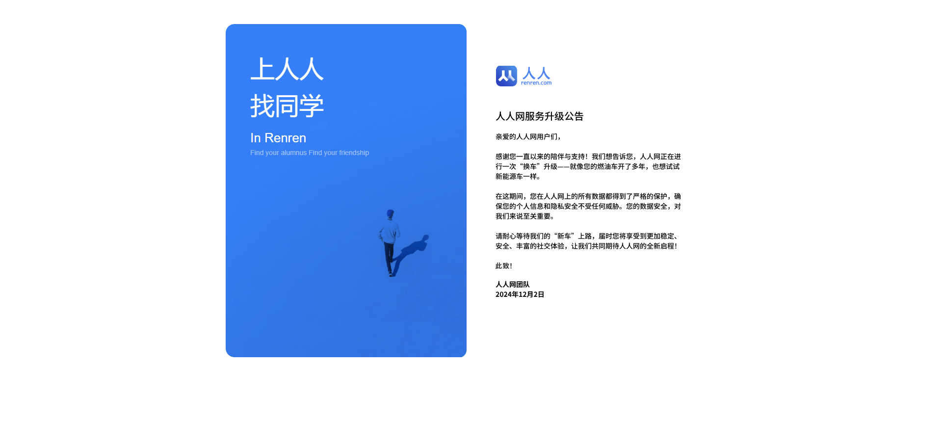 人人網服務升級公告